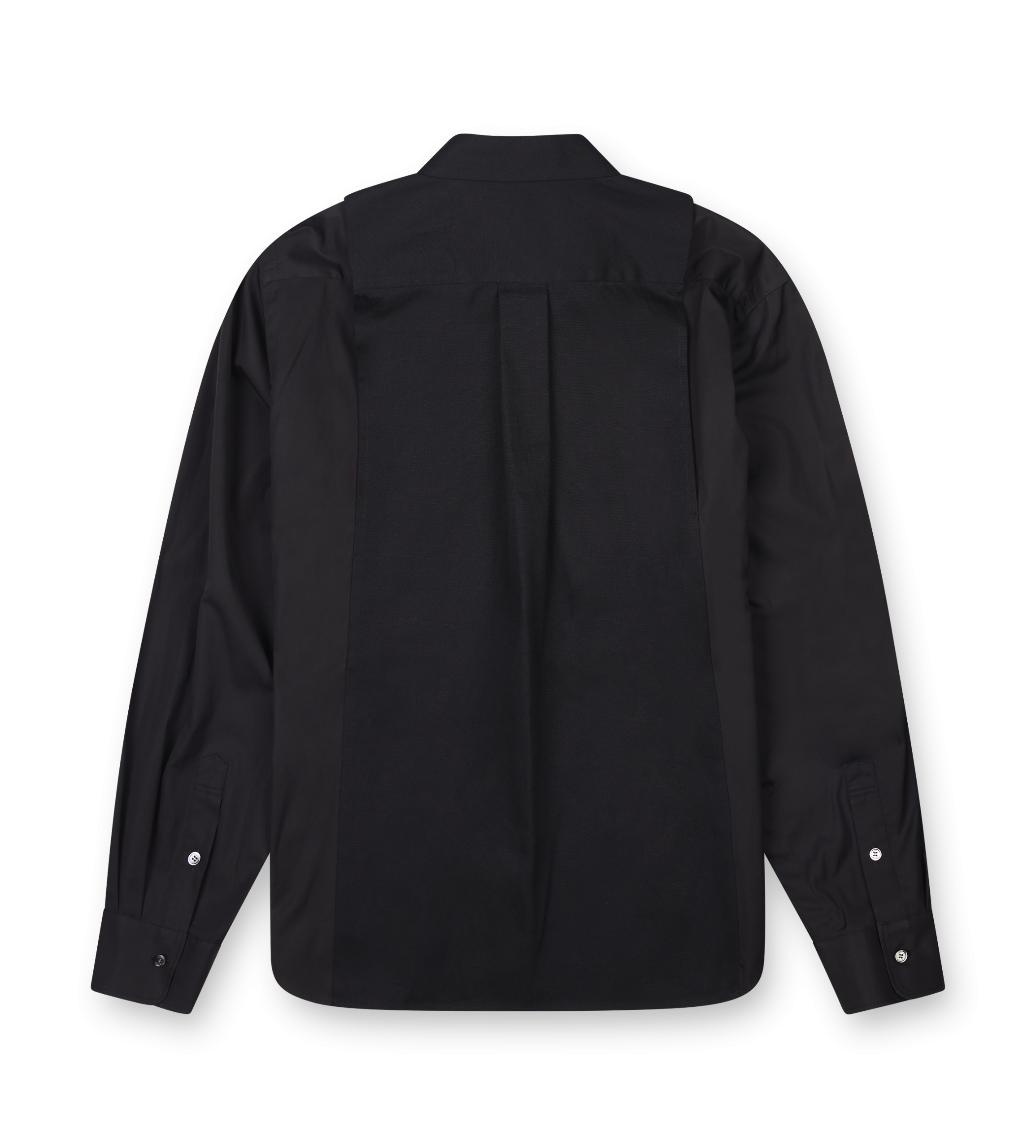 Sacai FW25 25-03775M 001 Poplin Shirt – Black Hybrid design combining classic shirt tailoring with technical elements Constructed from crisp cotton poplin in black Layered panels create a dimensional, deconstructed aesthetic Point collar and button-down front closure Contrasting fabric inserts at the sleeves and sides Single chest pocket with asymmetrical detailing Relaxed fit with dropped…