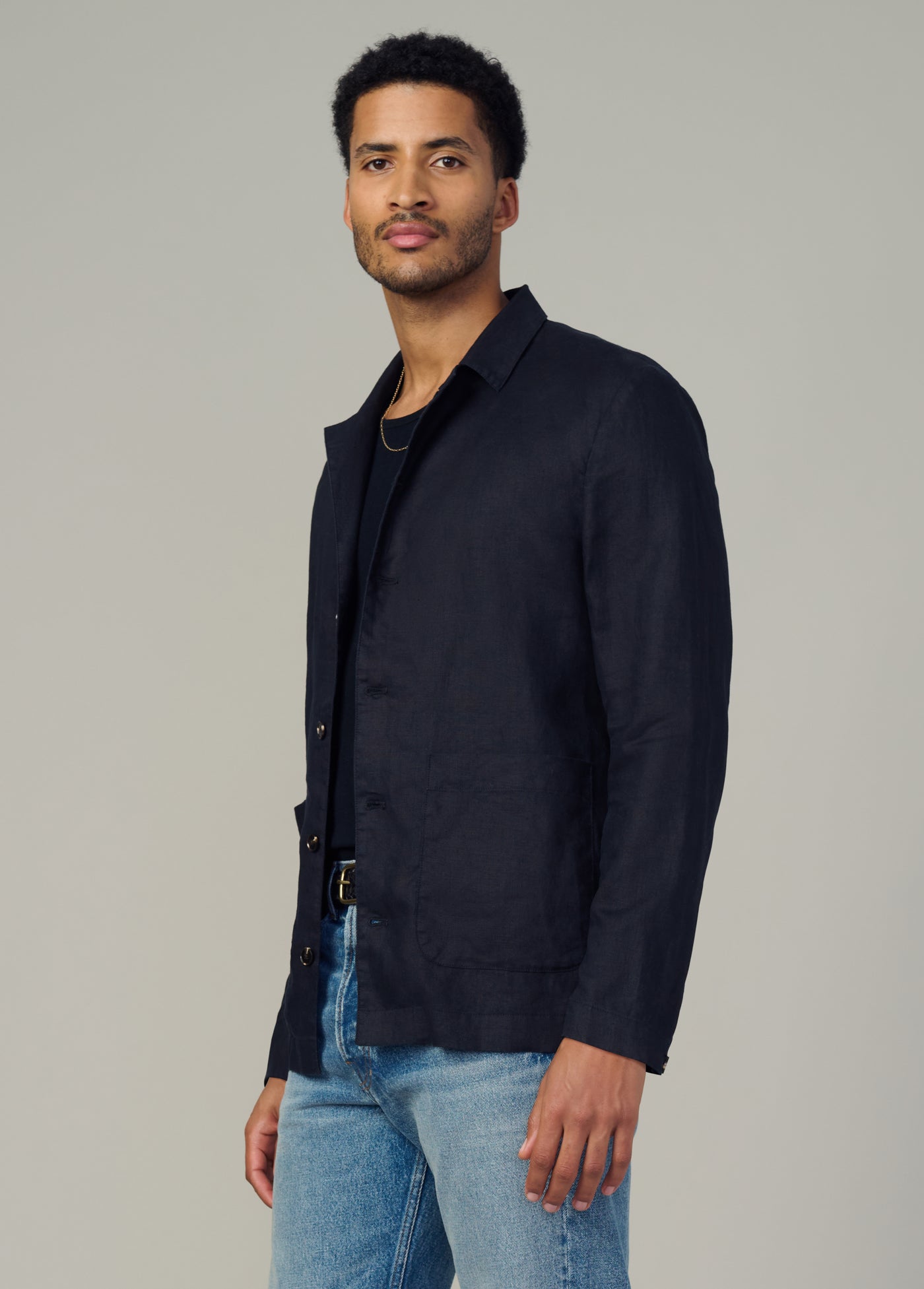 A go-to lightweight and airy blazer that can be worn buttoned up as a shirt or unbuttoned as a blazer.