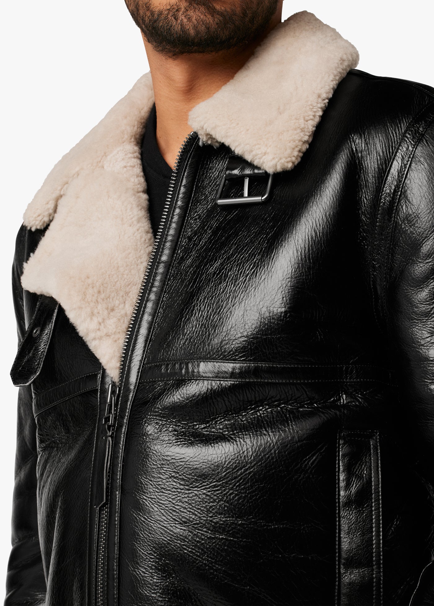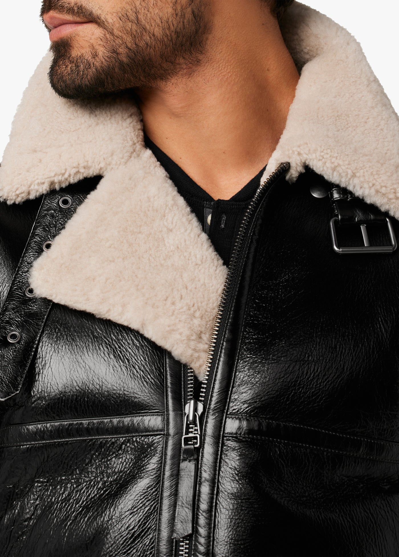 It’s the maverick of outerwear. The Irvin Shearling Aviator offers all the warmth and styling but of a classic aviator jacket but with modern design. It’s cut from a thick-pile shearling and crackled leather with an exaggerated collar and lapel, zipper sleeves and belt-buckle details at the neckline.100% LEATHERMODEL IS WEARING SIZE M