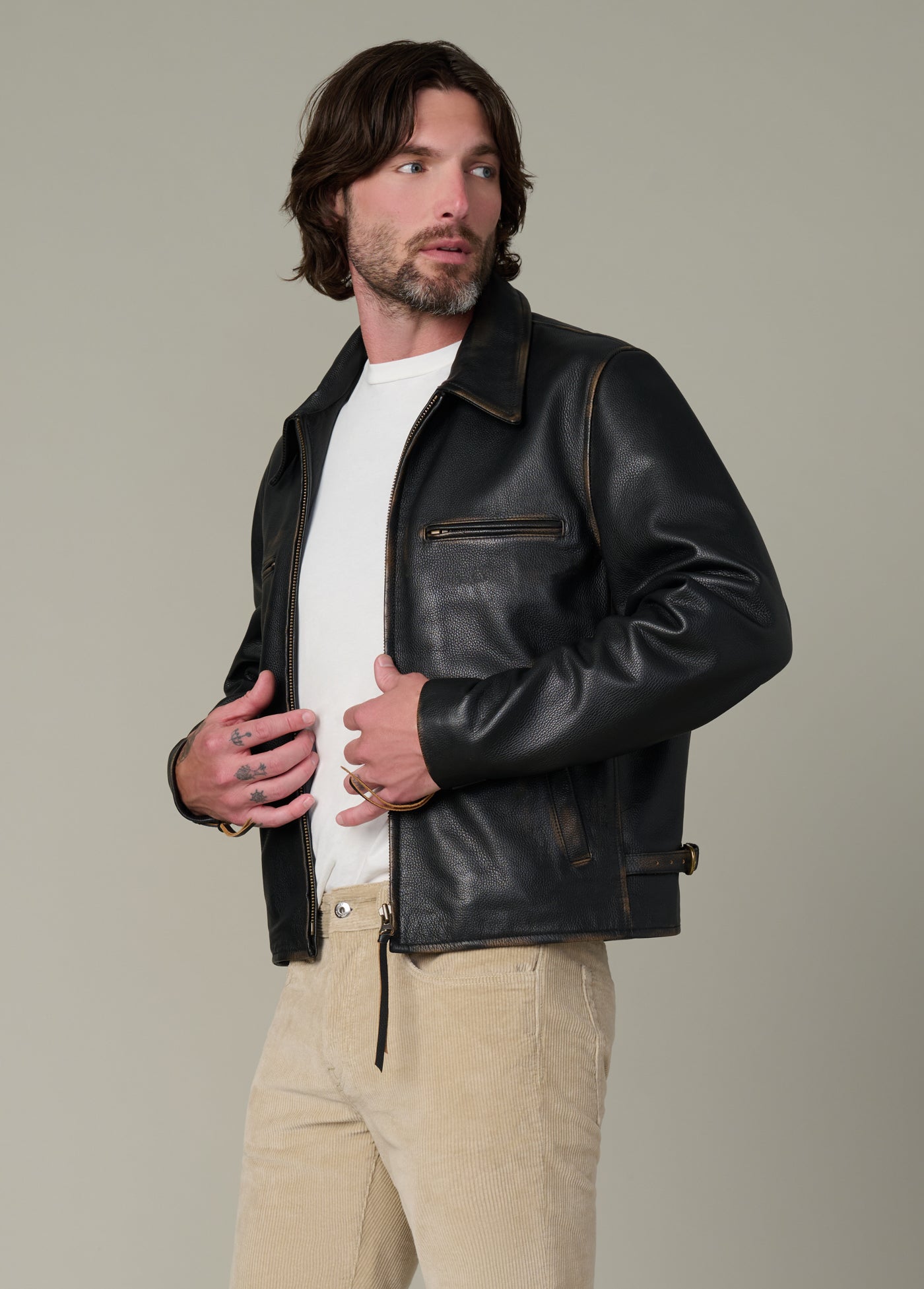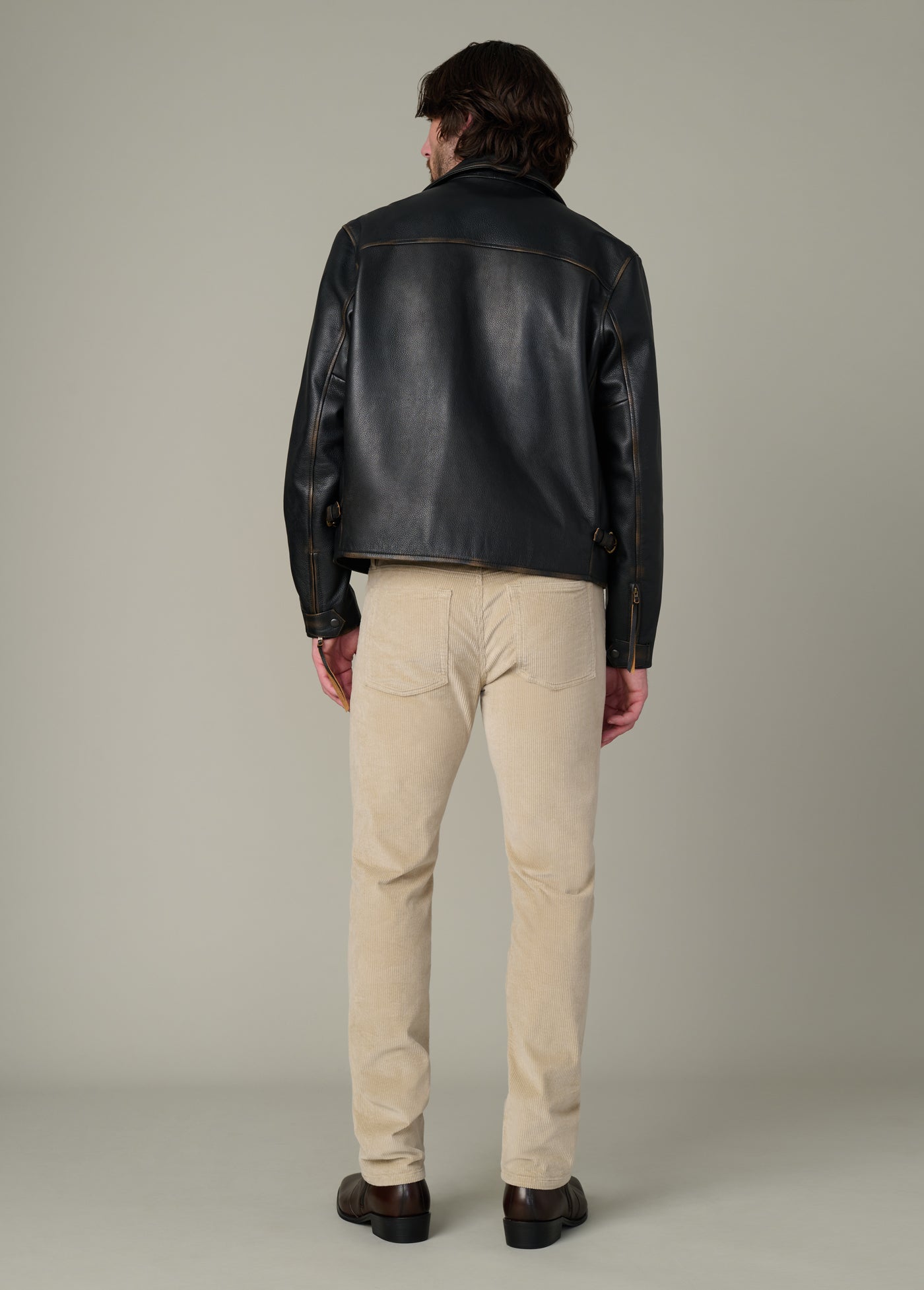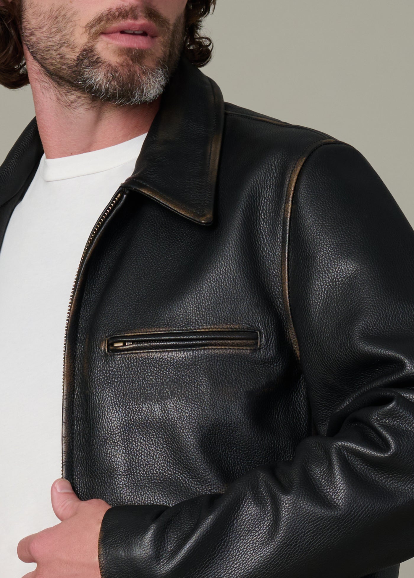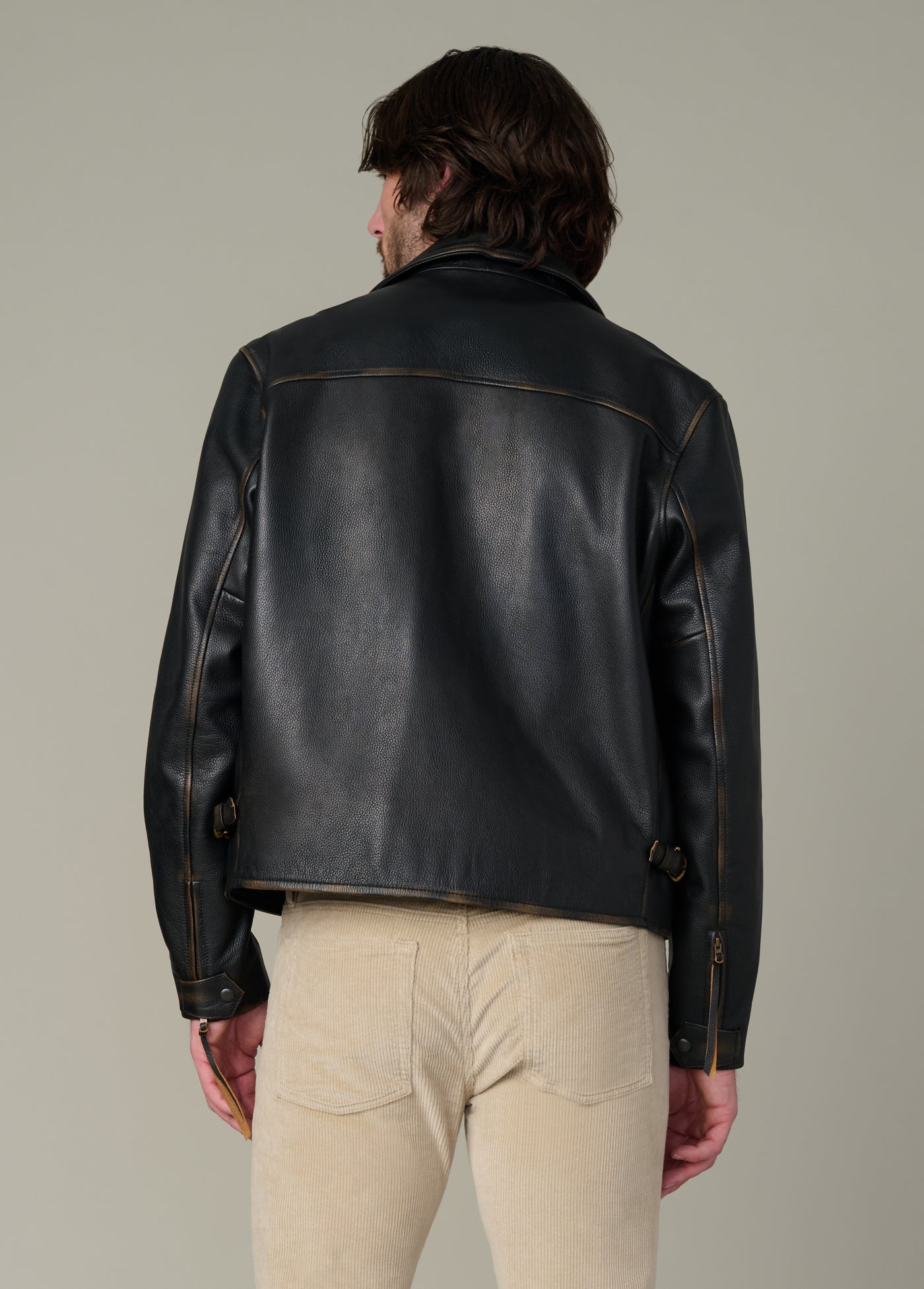 Our classic men’s leather jacket made from premium cow leather that has been bleached to create a natural-looking wear.