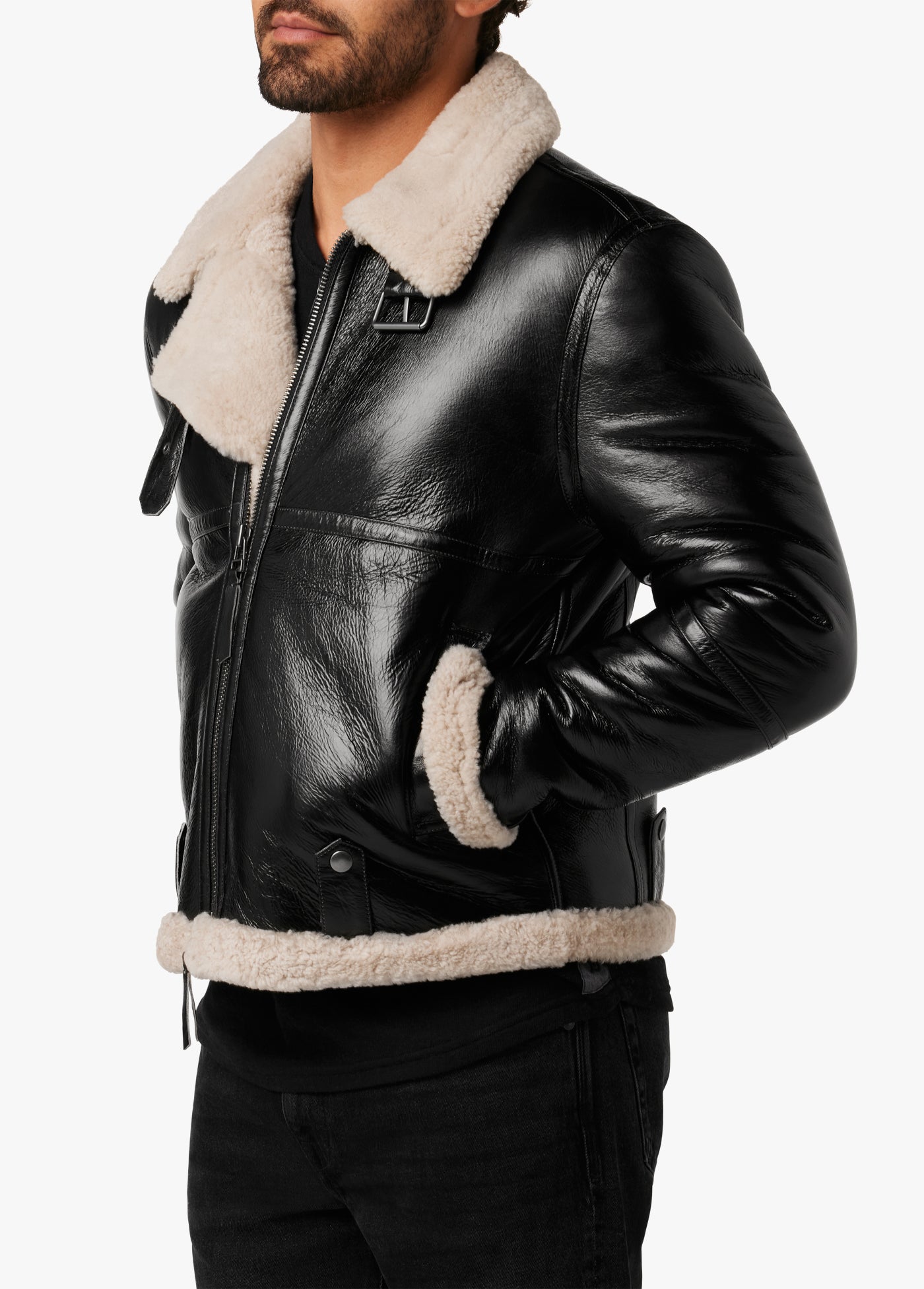 It’s the maverick of outerwear. The Irvin Shearling Aviator offers all the warmth and styling but of a classic aviator jacket but with modern design. It’s cut from a thick-pile shearling and crackled leather with an exaggerated collar and lapel, zipper sleeves and belt-buckle details at the neckline.100% LEATHERMODEL IS WEARING SIZE M