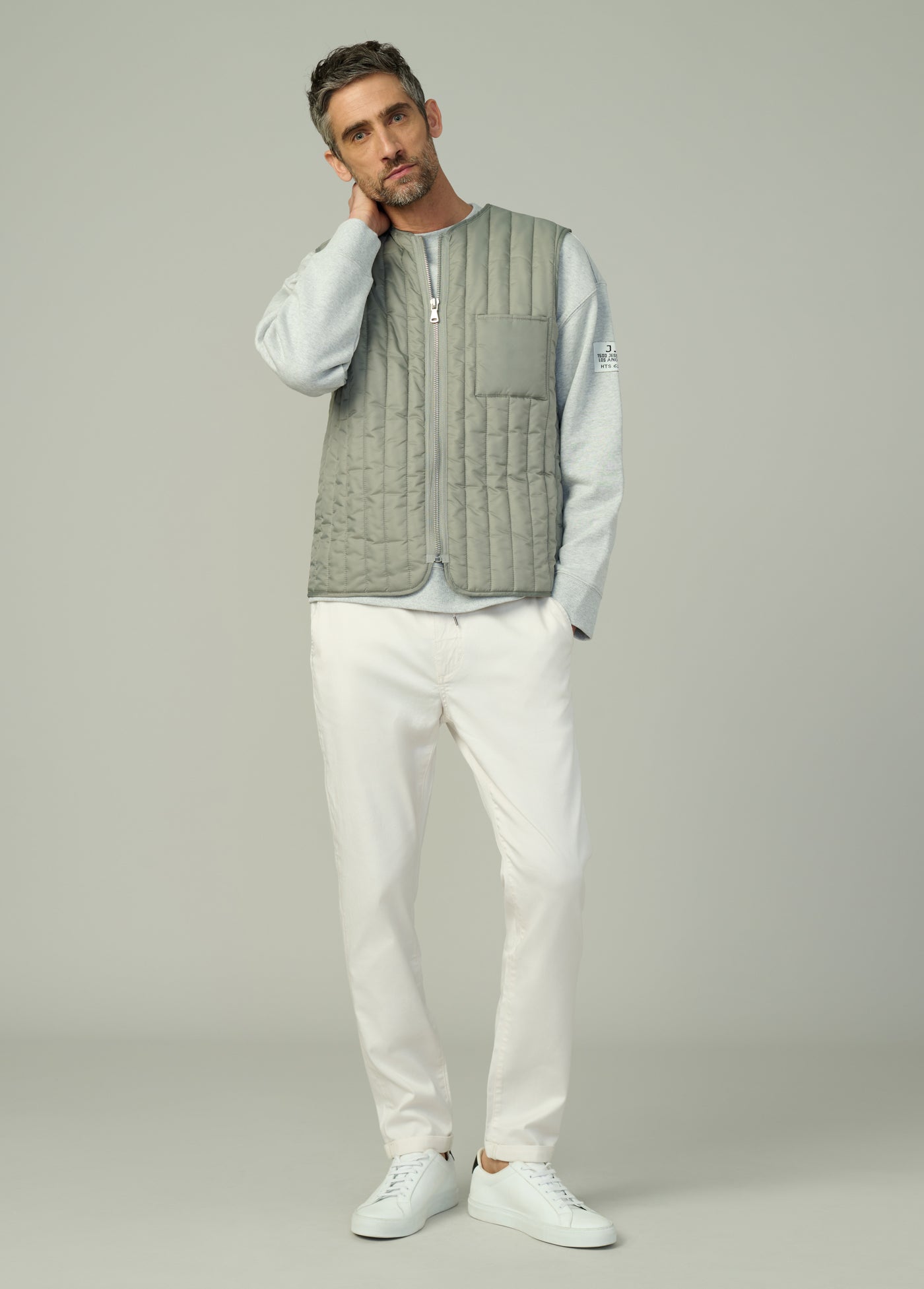 A lightweight layering piece that makes for a seasonless wardrobe staple. DETAILS + FIT Classic fit Single front chest pocket Front button closure Quilting detail 100% nylon with batting added for extra warmth.Gabriel is 6’2” and is wearing a size M Waist: 32” Chest: 39” Inseam: 34”